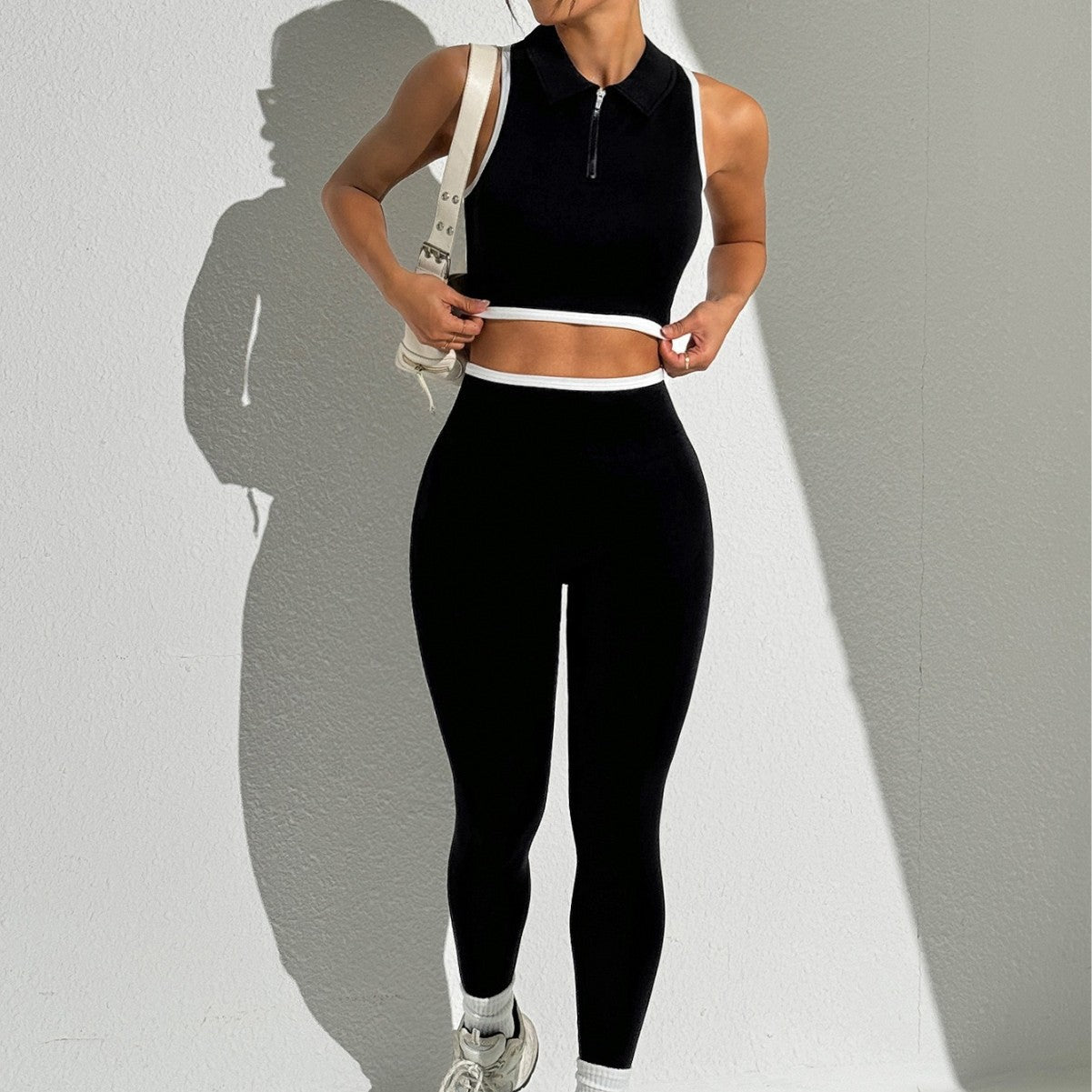 Round Neck Yoga Clothes Sleeveless Running Bra Fitness Trousers Sports Suit