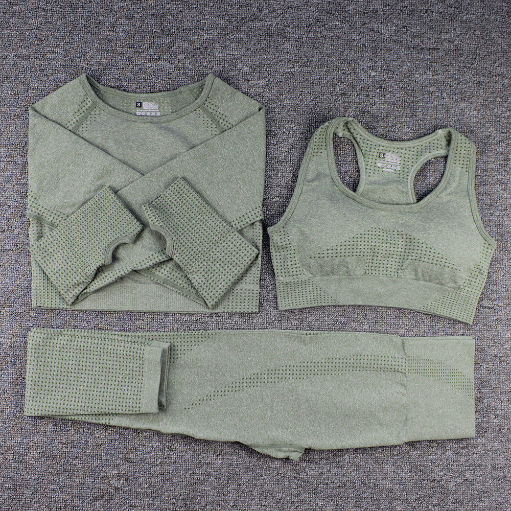 Three-piece Bra Long Sleeve Top And Trousers Suit Yoga Clothes